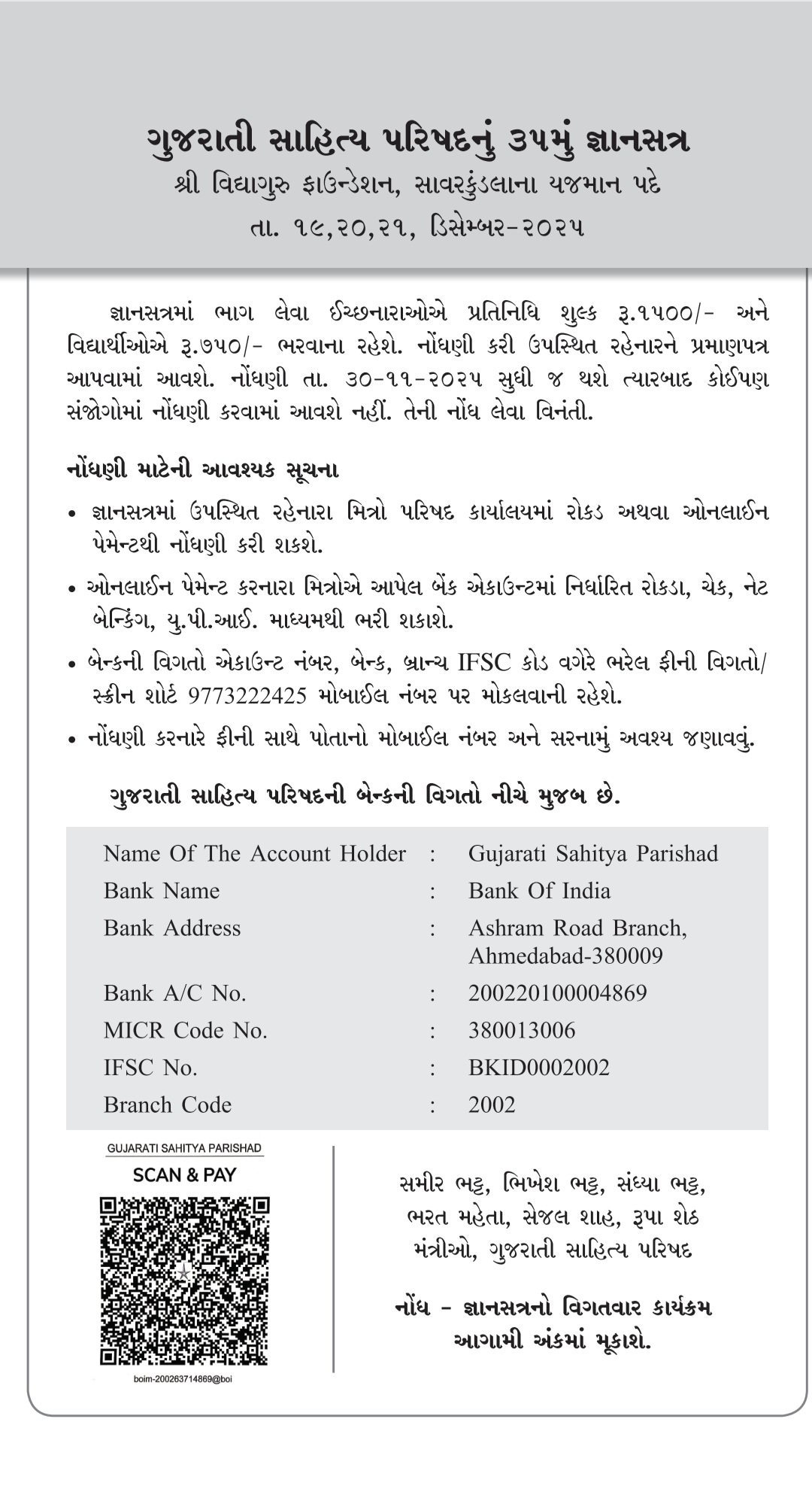 - કાર્યક્રમની માહિતી: ૩૫મું જ્ઞાનસત્ર, ૧૯-૨૦-૨૧ ડિસેમ્બર - ૨૦૨૫, શ્રી વિદ્યાગુરુ ફાઉન્ડેશન, સાવરકુંડલા